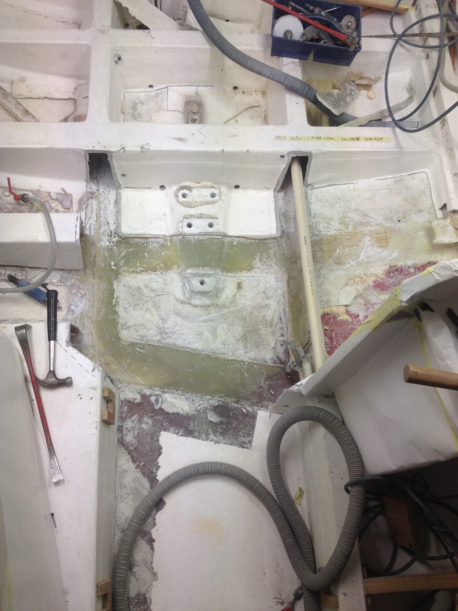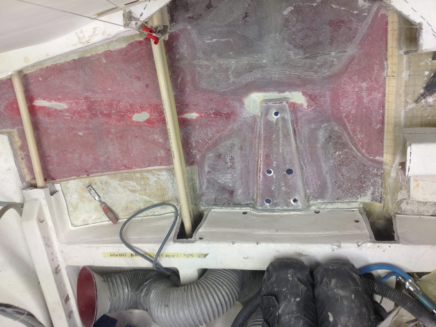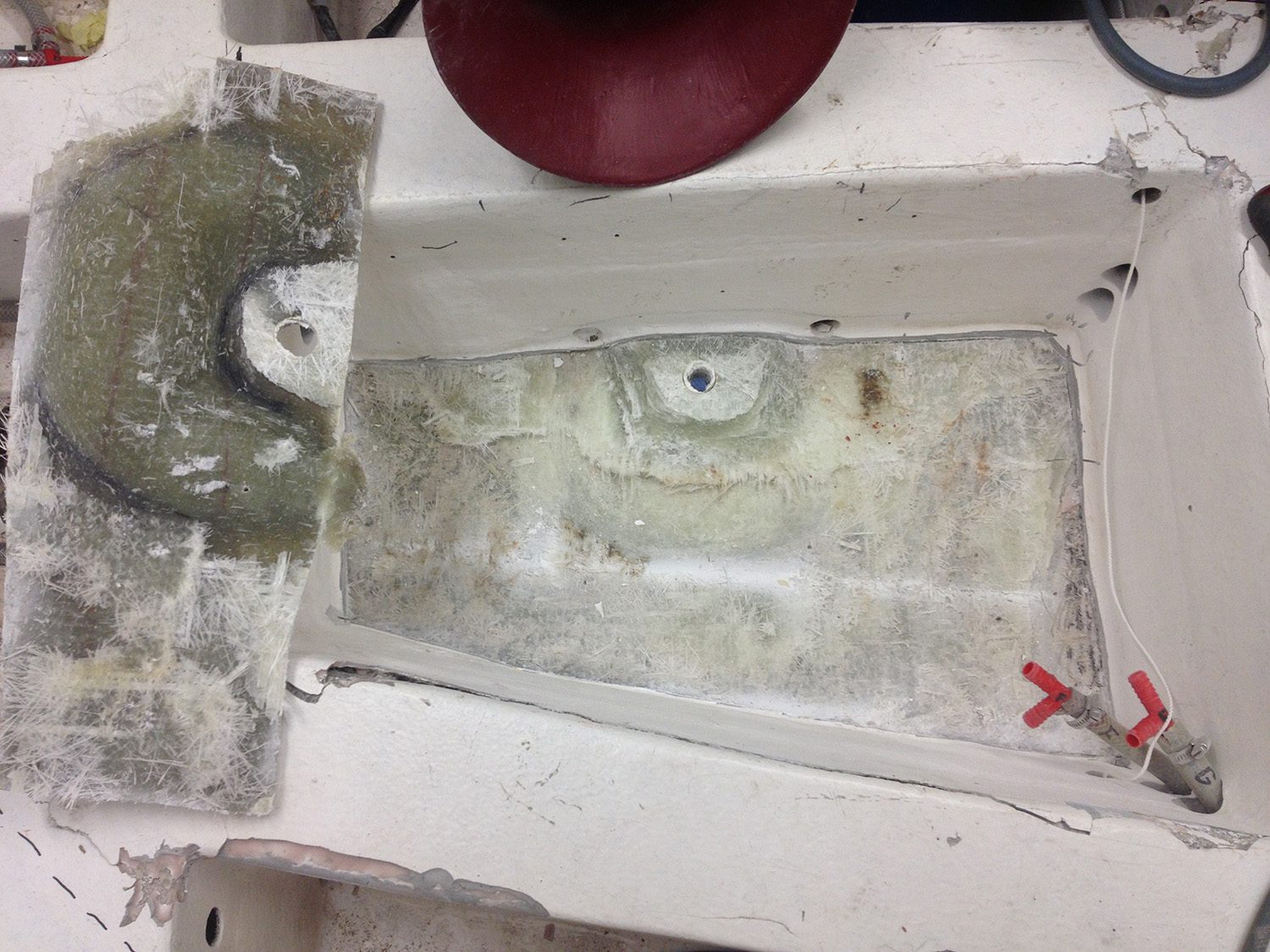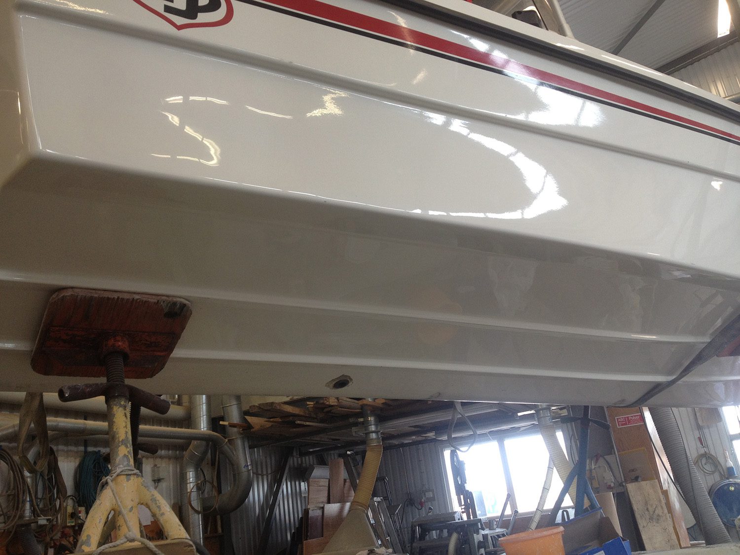 Reparation av grundstött motorbåt med brustet skrov.