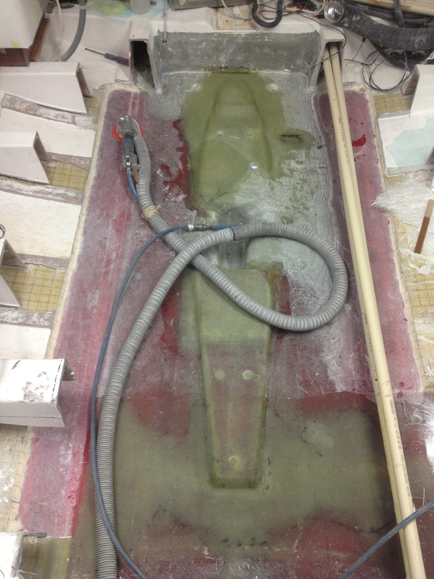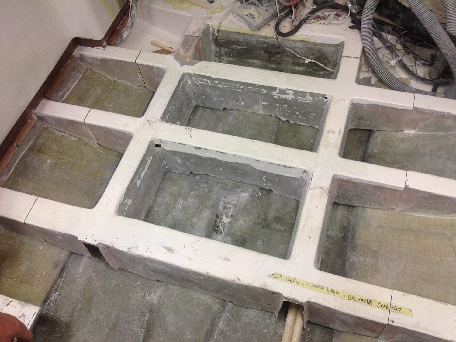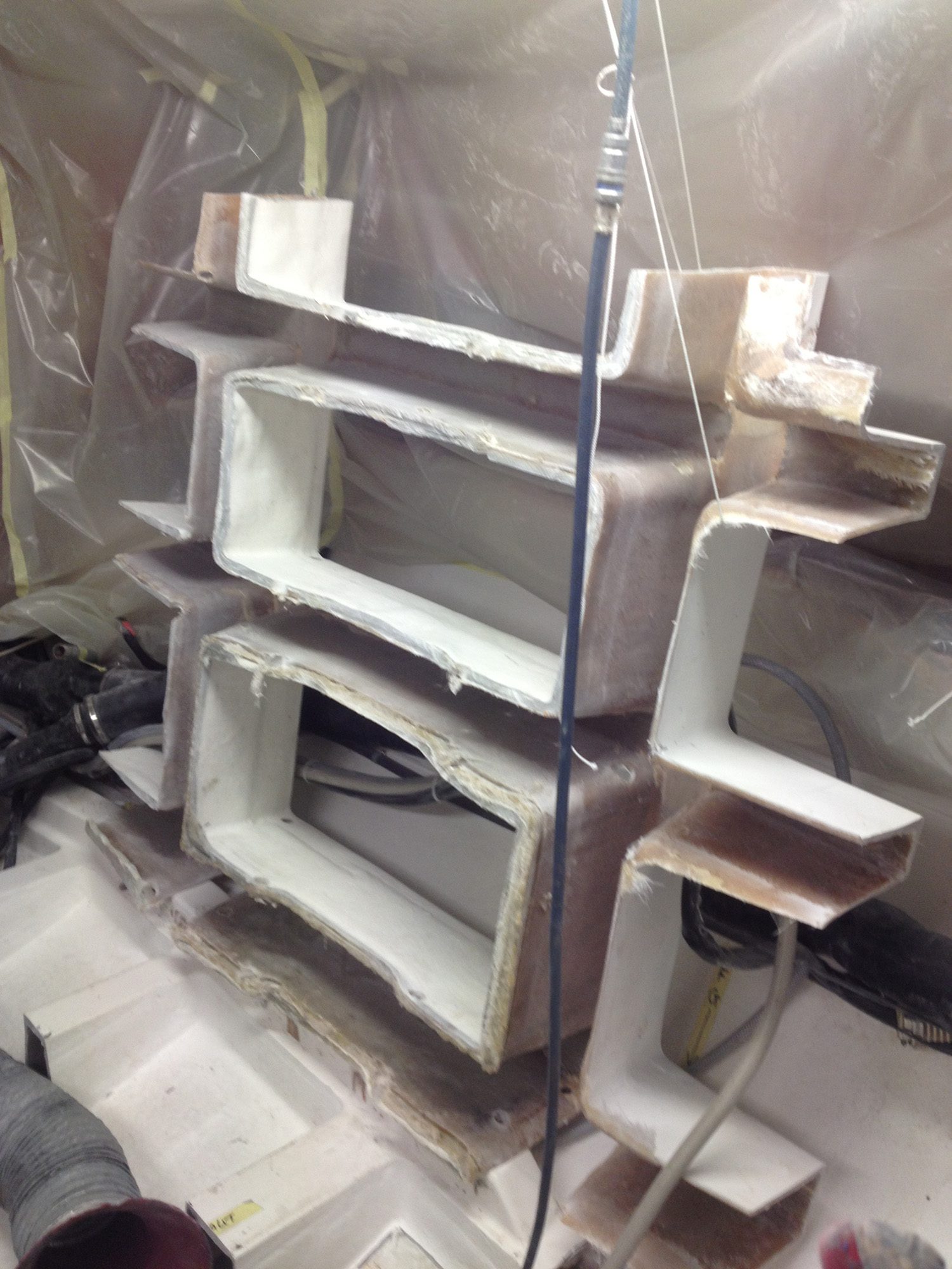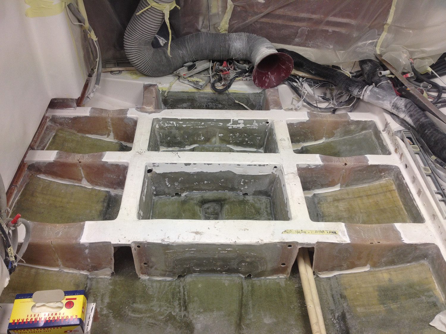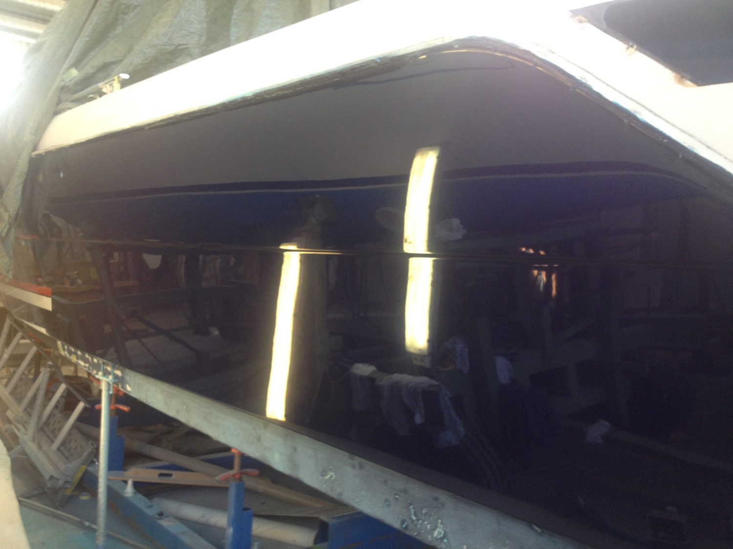 Reparation av grundstött motorbåt med brustet skrov.