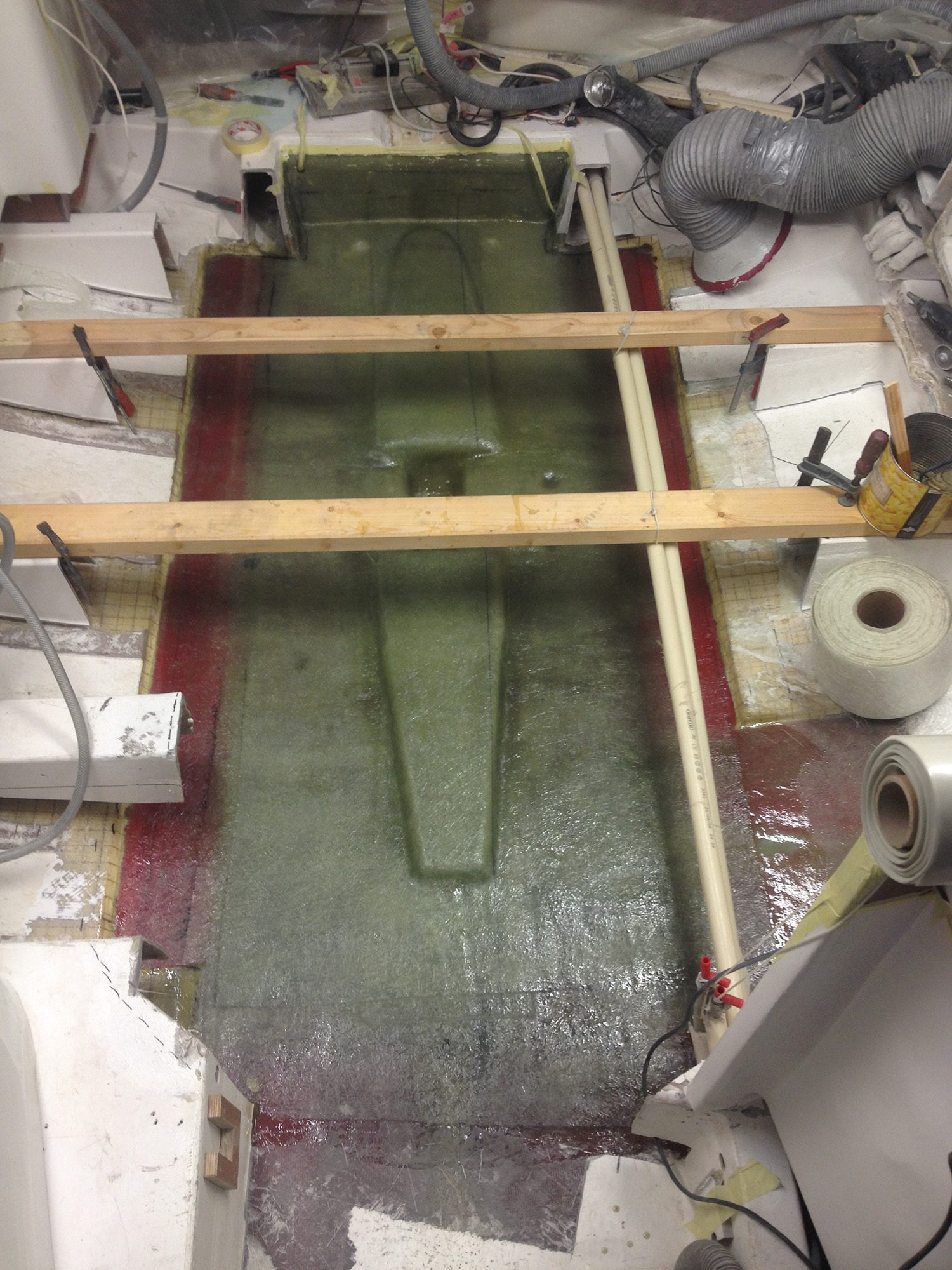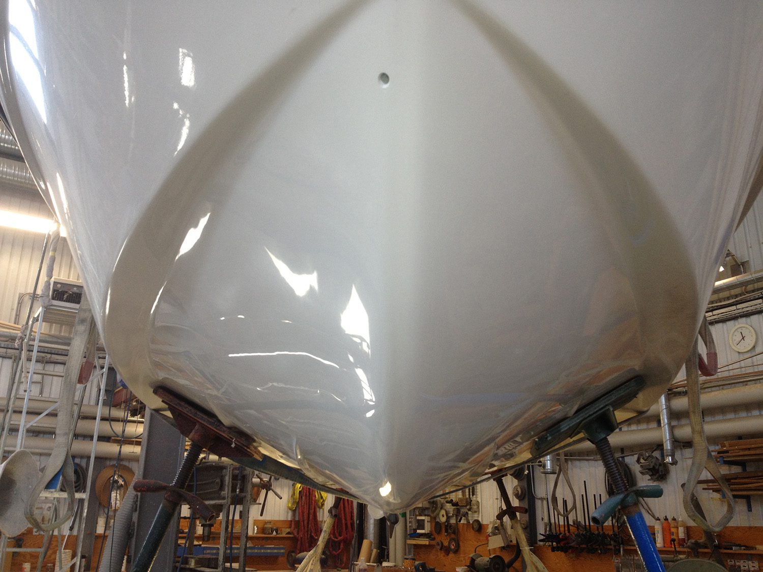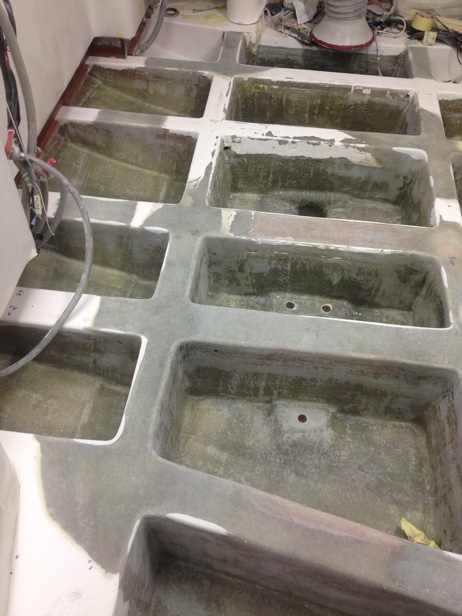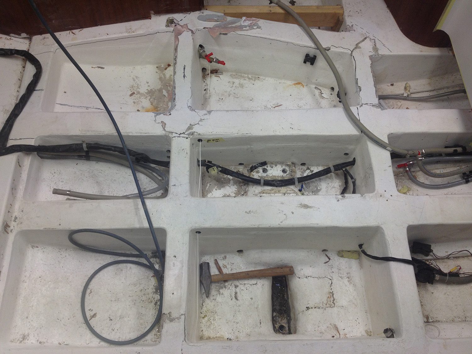 Reparation av grundstött motorbåt med brustet skrov.