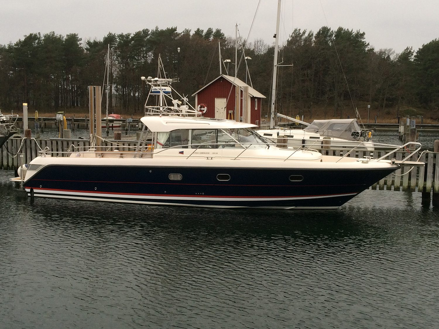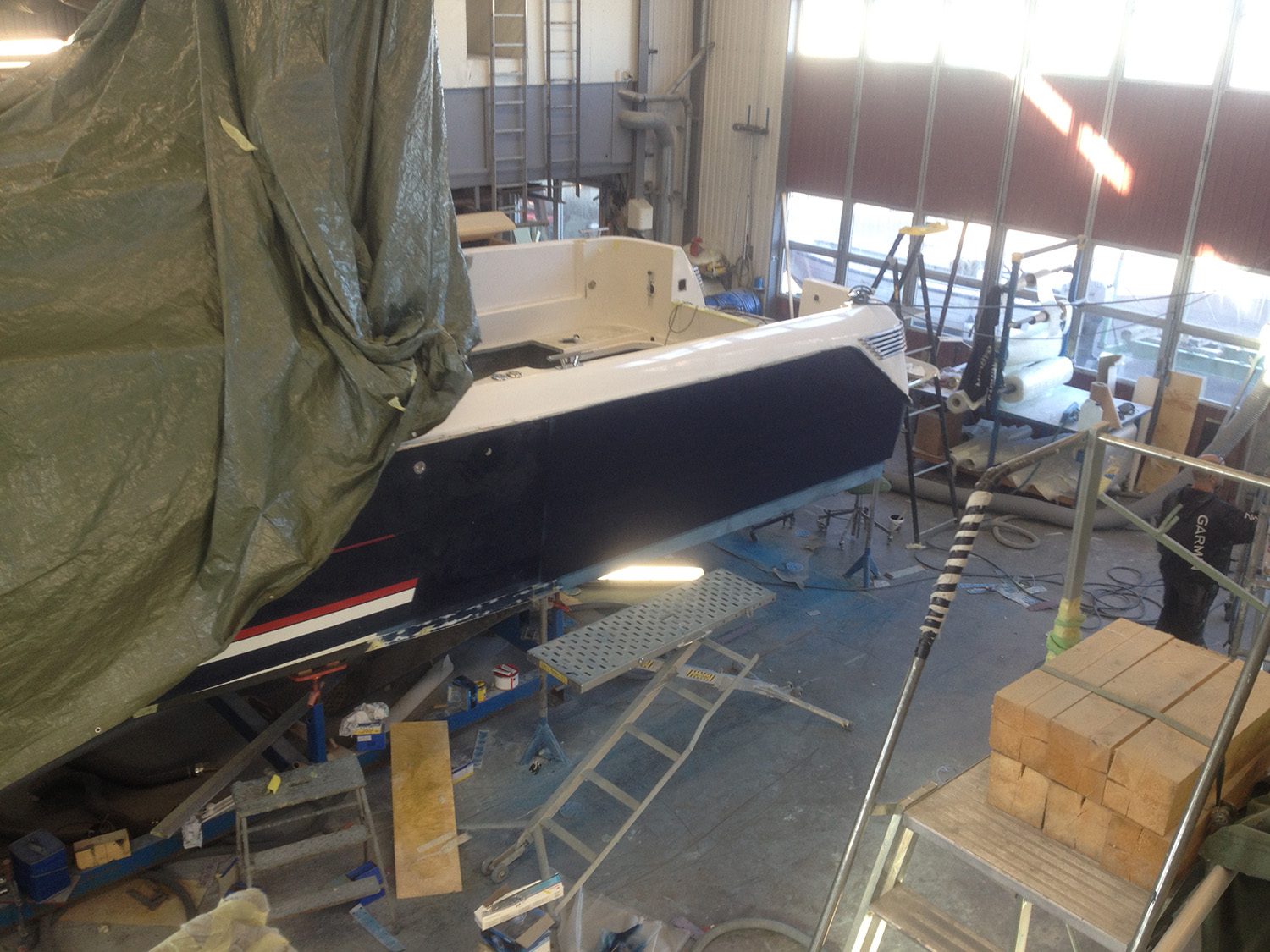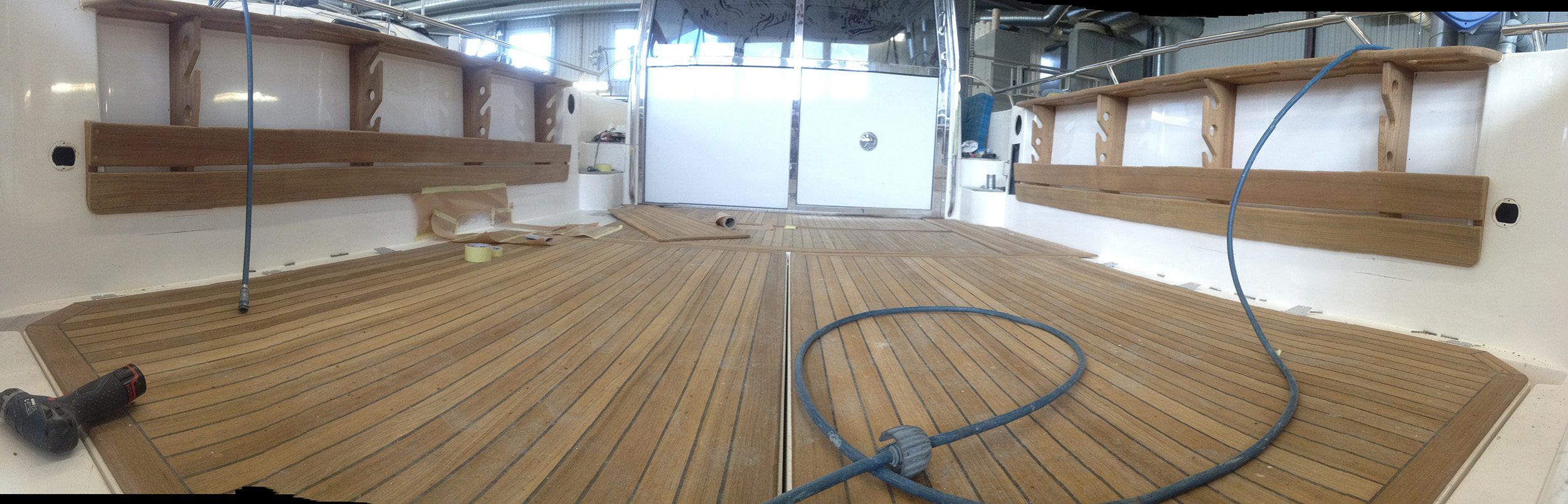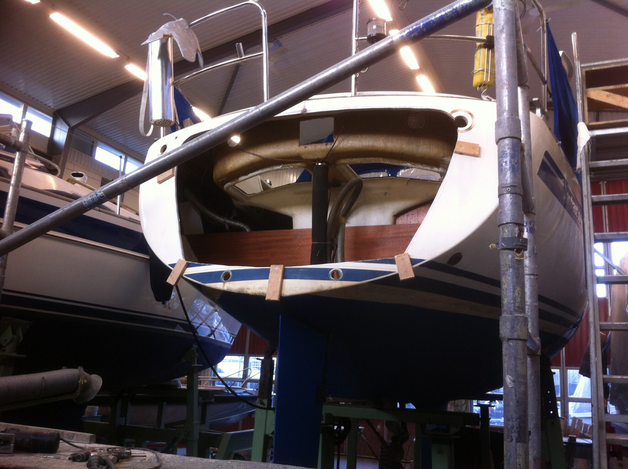 Förlängning av Nimbus 33 till 38 fot med totalt ombyggt motorrum, akterdäck och akterspegel.