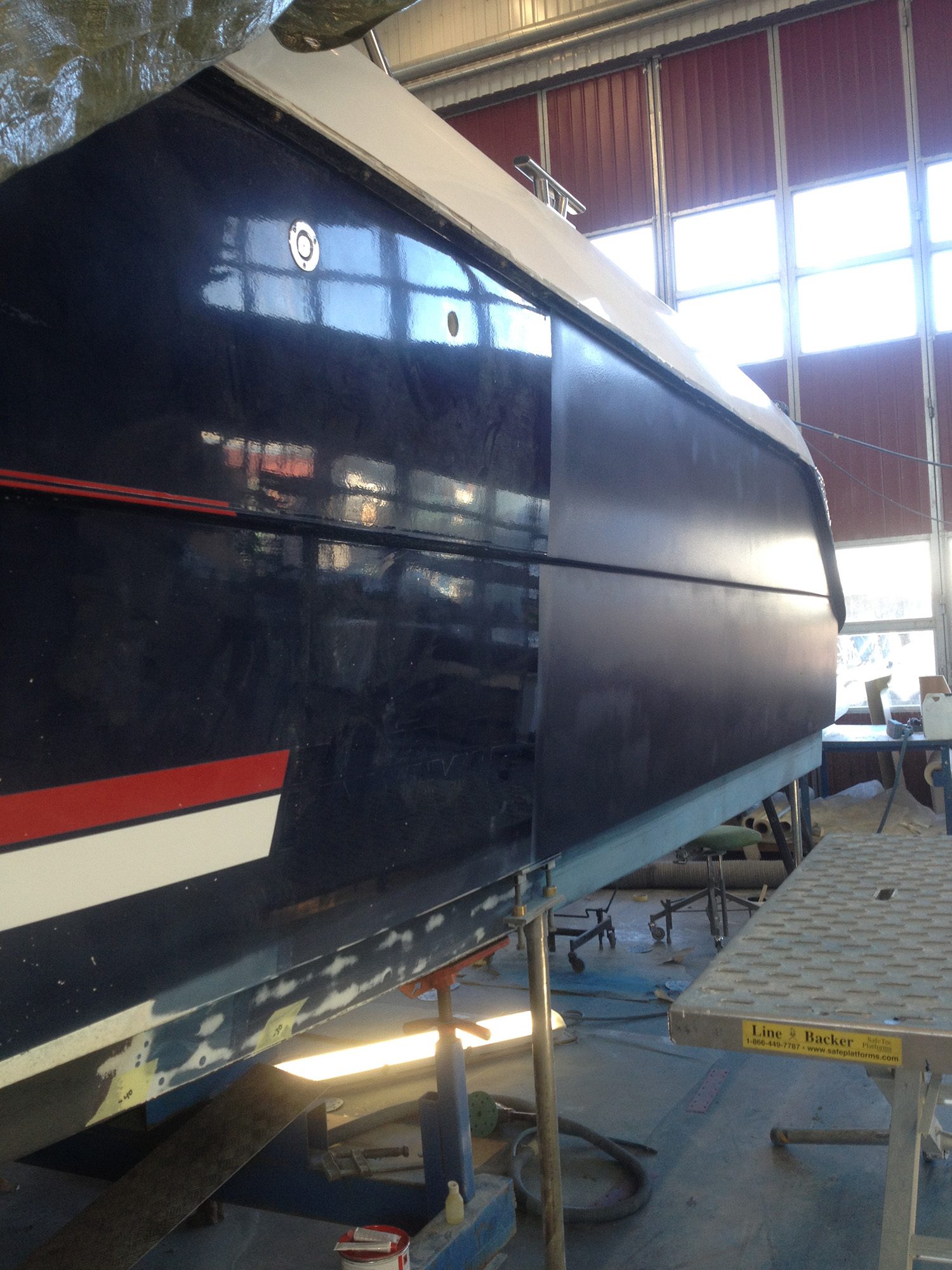 Montering av ny akterspegel med badbrygga.